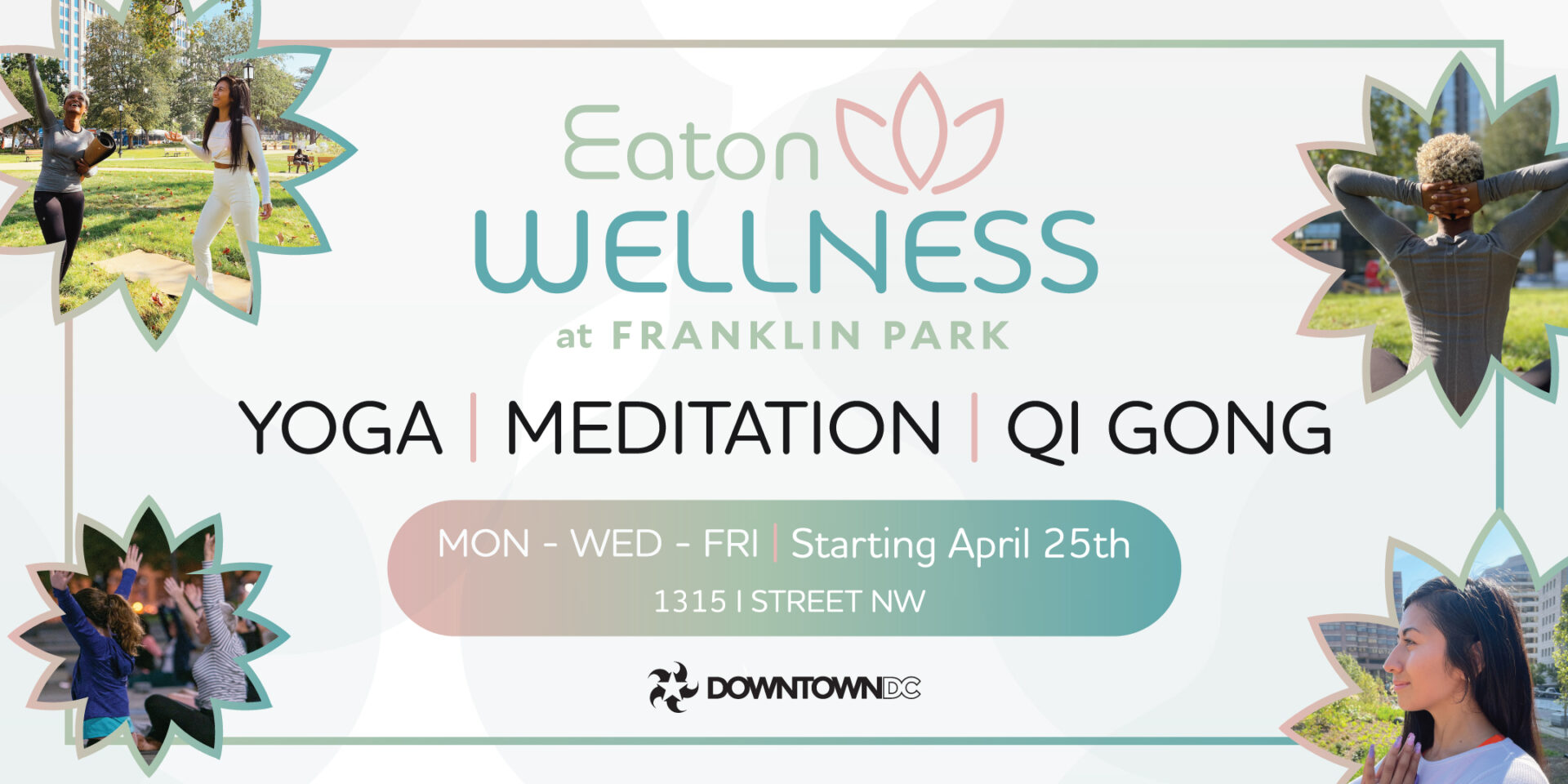 The DowntownDC BID and Eaton DC are honored to bring back our free outdoor wellness programming at Franklin Park starting April 25th 2022.